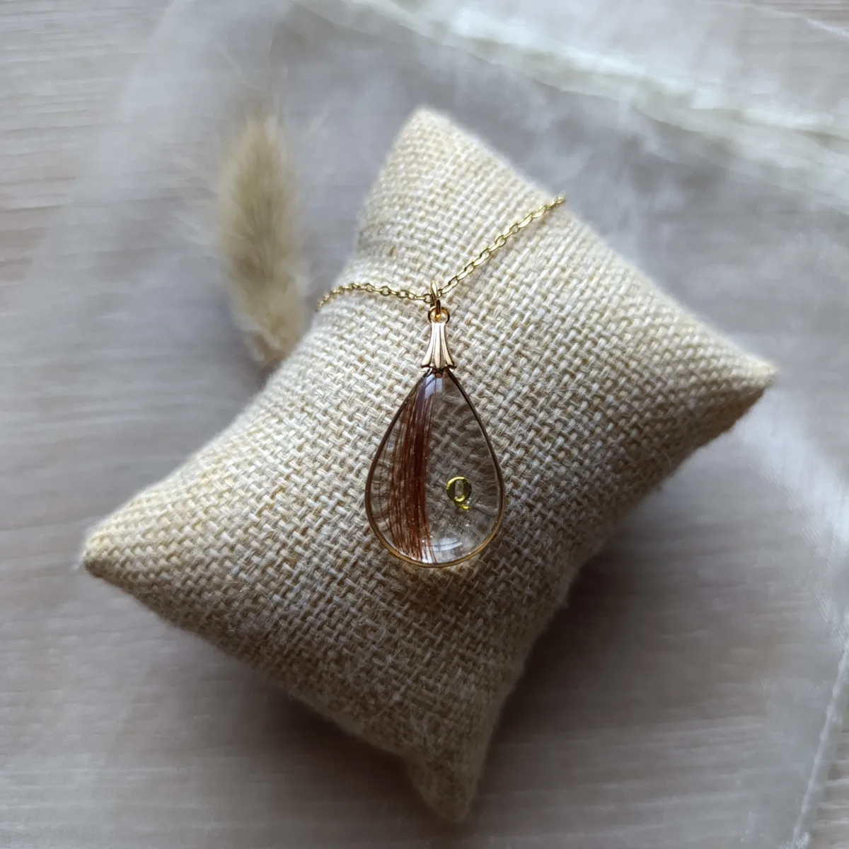 Ce bijou peut également contenir un souvenir personnel tel qu’une mèche de cheveux, des poils d’animaux ou des crins, afin de rendre chaque pièce encore plus unique et symbolique.
